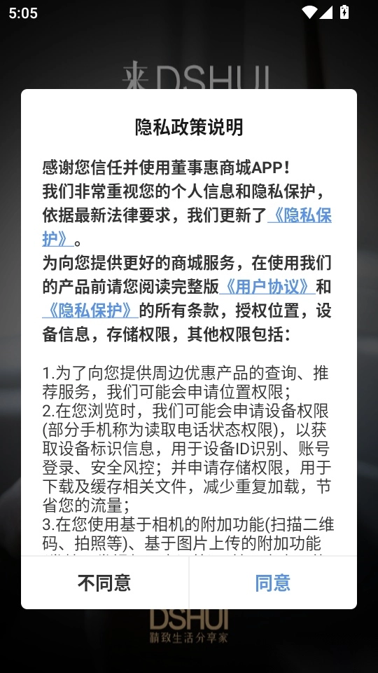 1.首先打开软件阅读“隐私政策说明”后,点击“同意”按钮进入