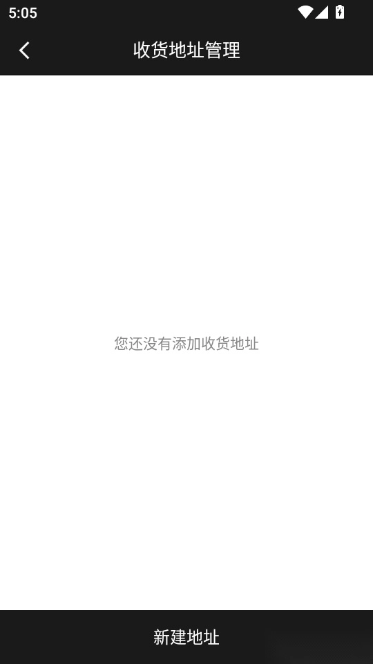 5.之后进入“收货地址管理”菜单界面,点击底部“新建地址”功能按钮点击进入