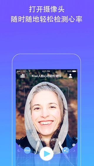 Kiwi人脸心率检测仪借助智能手机摄像头捕捉面部细微的颜色变动,通过配套算法解析这些变动和心跳的联系,以此实时测算出用户的心率信息。不需要额外外接设备,只要让手机保持平稳并准确对准面部,就能在短短几秒内得到心率数值。