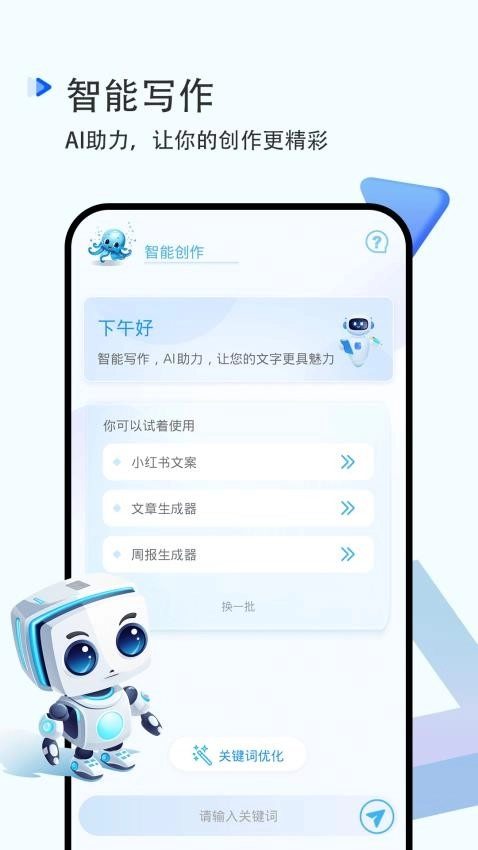AI写作手机版是一款以智能写作为核心功能的应用,它运用了全新的人工智能技术,不仅能够根据用户的自定义需求生成所需文章,还支持对文章内容进行局部替换。此外,该应用拥有海量独家素材,能够全方位满足用户在创作方面的多样化需求。