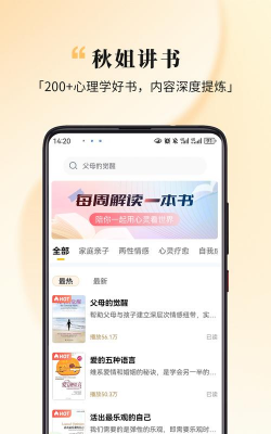 全民幸福社平台上有不少心理类书籍,还有一些情感电台节目可供收听。要是你感觉压力较大,不妨到这个平台看看书,既能舒缓情绪,也是一个释放压力的过程。