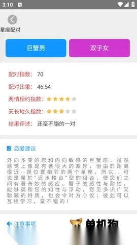 2. 提供星座配对功能:对星座感兴趣的朋友有福啦,能帮你查询各个星座组合的匹配度,还有明星的星座配对案例,乐趣无穷。