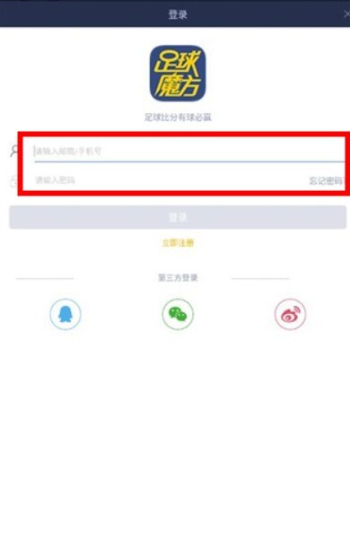 使用足球魔方应用时,开启软件,进行账号登录操作。