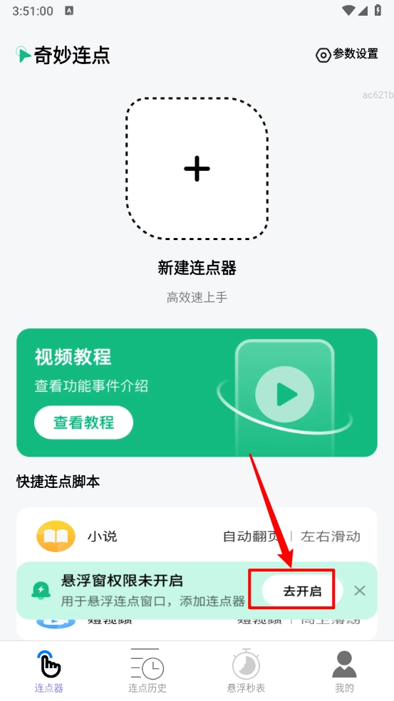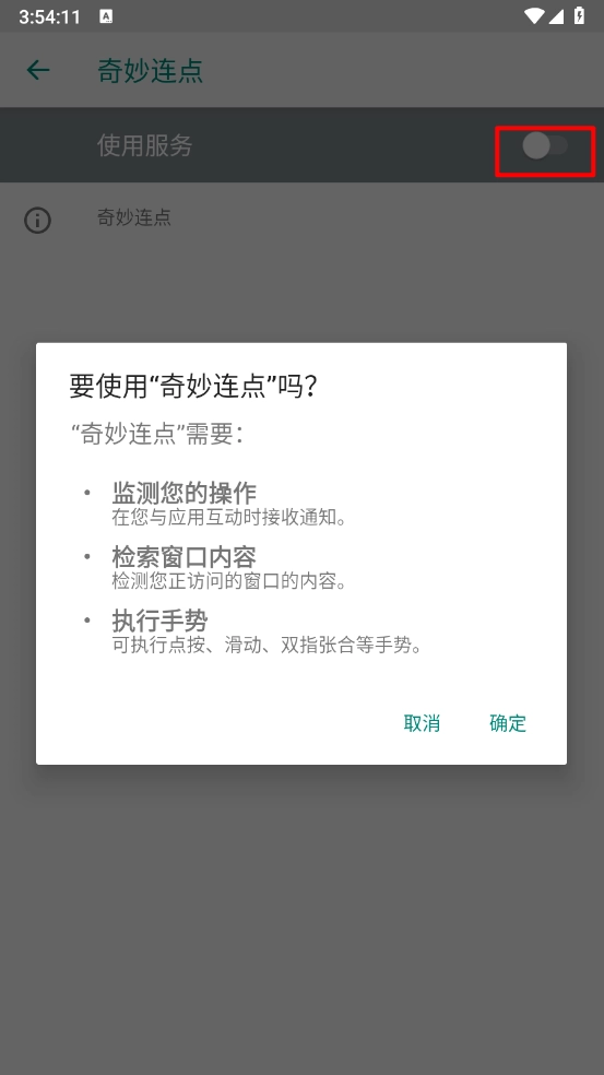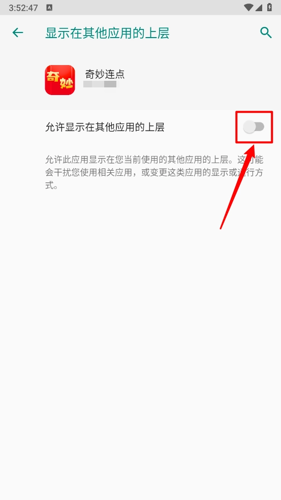 3、如图所示,打开奇妙连点的悬浮窗开关即可。