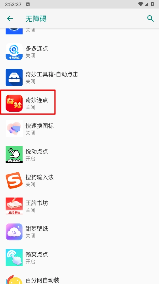 4、同时还需要进入无障碍页面打开"奇妙连点"。