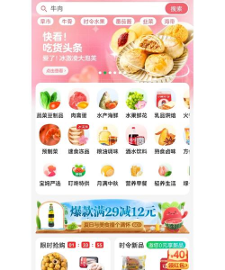 【品类齐全】 新鲜蔬菜、水果、肉禽蛋、米面粮油,水产海鲜、南北干货、方便速食。 应有尽有,厨房用品也能买到哦~