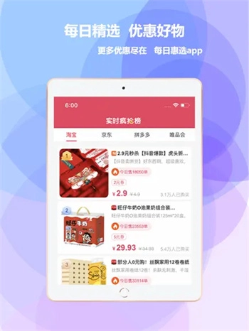 设置实时疯抢榜单,数据实时更新,方便用户快速知晓各大购物平台当下最热门的分享产品。