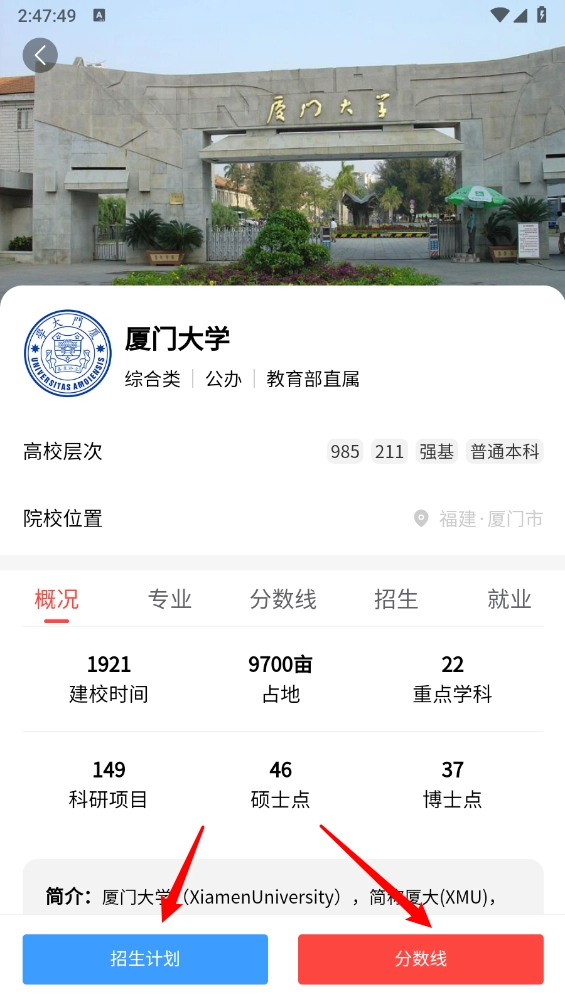 6、一键点击进入即可查看相应的招生计划和往年的分数线等详情。