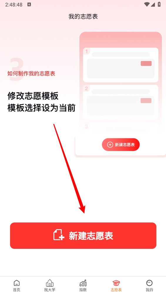 8、最后在"志愿表"板块,可以进行新建志愿表,模拟填志愿。