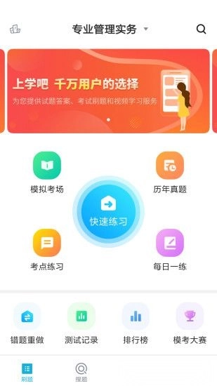 我们做题的模式有:模拟考场、快速练习、考点练习、测试纪录、错题重做等。您可以选择历年真题模式,我们会推荐该考试的理念真题给您,以方便您进行练习。