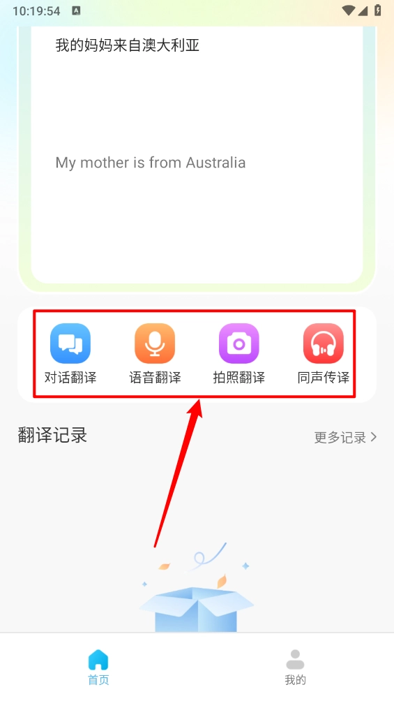 2、在主页就能输入想要翻译的词语或句子,输入后系统会自动进行翻译。