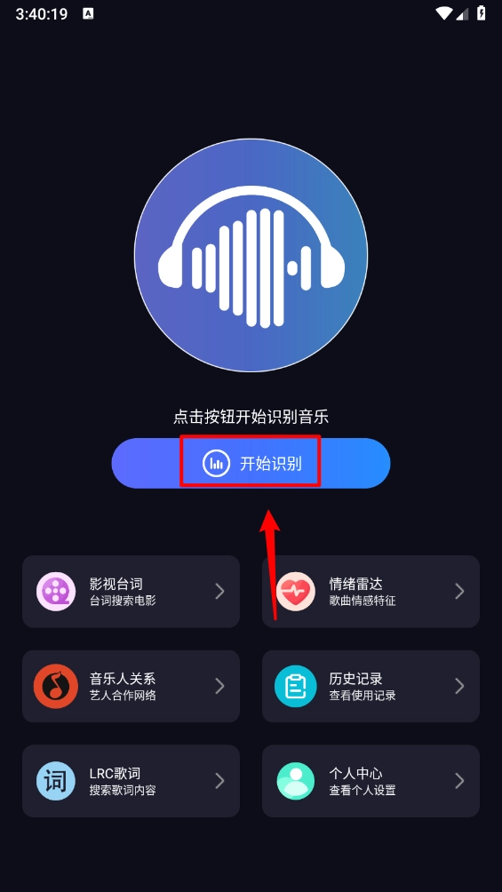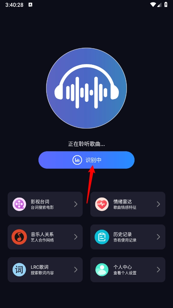 2、界面简洁直观,用户只需轻点一下,就能启动歌曲识别功能,无需进行复杂设置,操作简单又快捷。