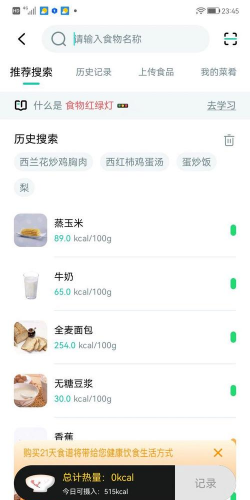 用户可以查询各种食物的营养成分和热量信息,帮助自己做出更健康的饮食选择。