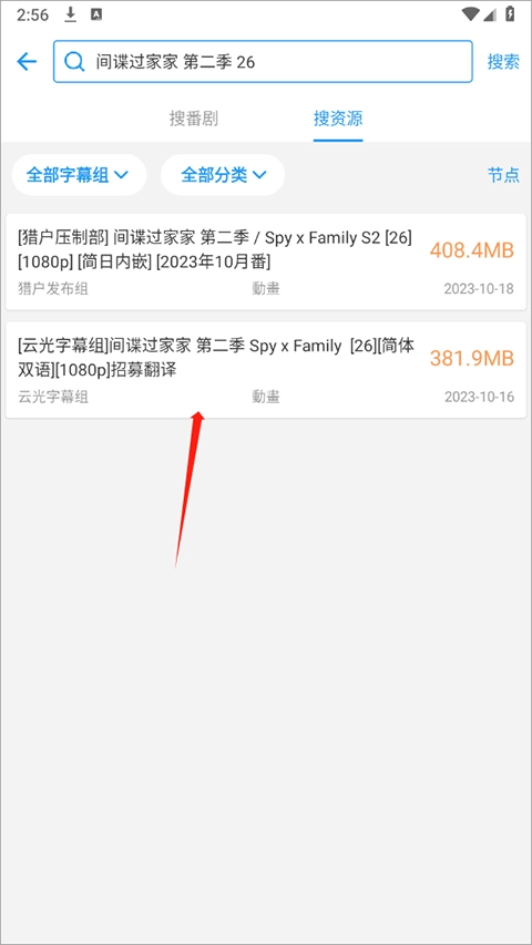 然后在该动漫详情界面中选择剧集页面,并点击播放的会话