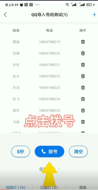 点击拨号,之后把接通的标记为意向客户,未拨通的可以再次拨打。