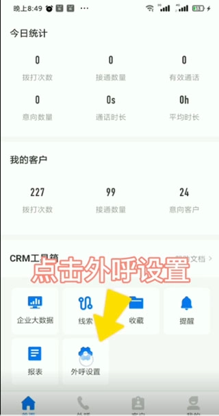 打开电销帮自动拨号软件,点击外呼设置