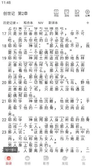 支持各节音频循环播放,不同翻译对应不同颜色显示,还能进行全文搜索。