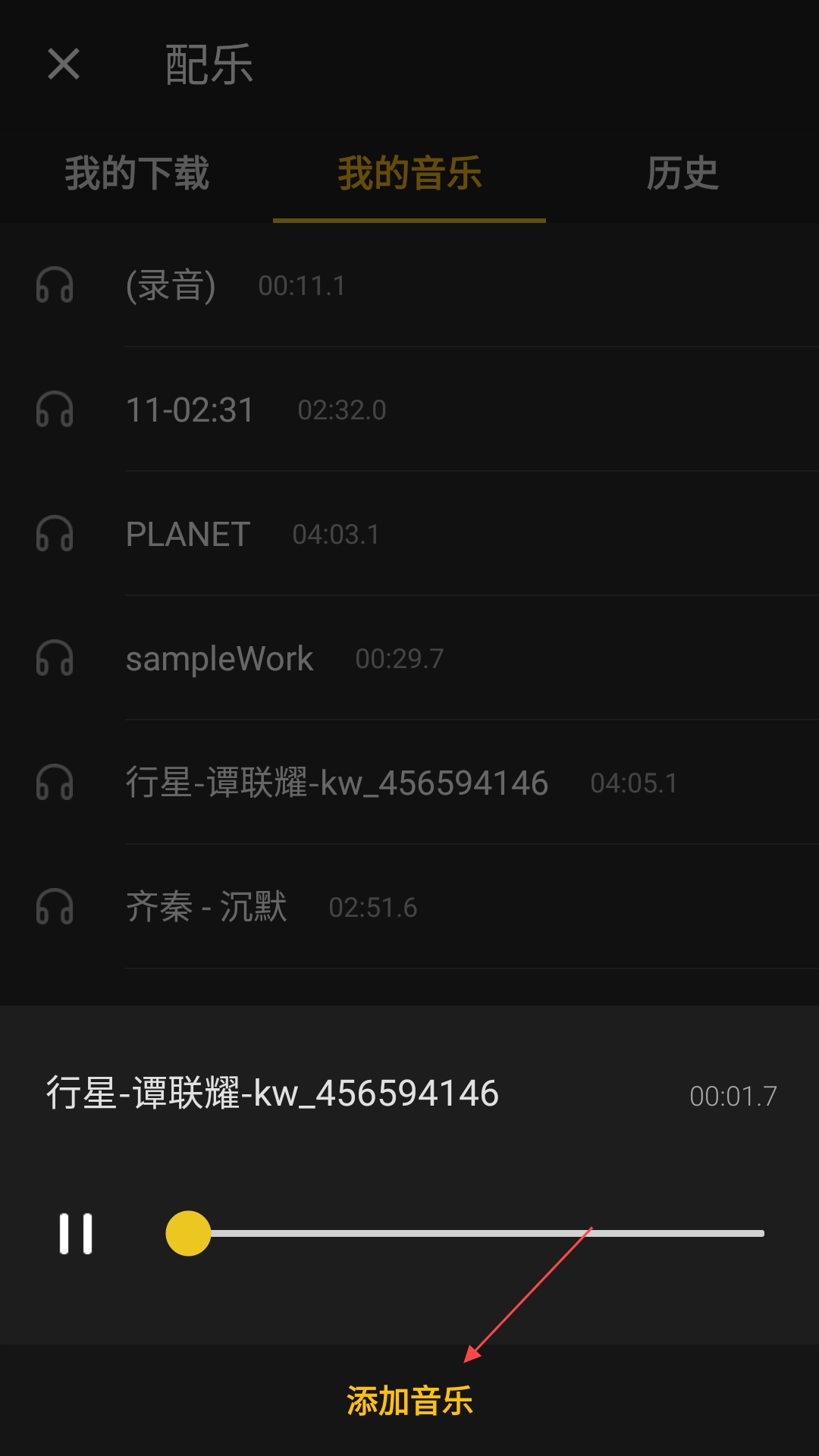 点击“选择你的音乐”按钮,挑选并添加你喜欢的音乐。