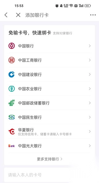 选择你要绑定的银行卡,选择银行卡类型,填写银行卡信息以及个人信息,根据系统进行下一步即可绑定成功。