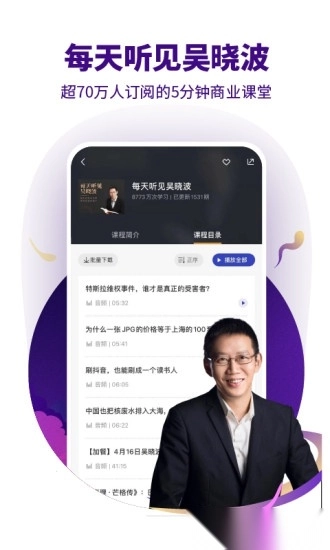 《大败局》《穷爸爸富爸爸》《投资最重要的事》《血疫》等经典好书,覆盖投资、商业、人文等多个领域,由吴晓波等行业大咖亲自解读,无论是上班途中、驾车时刻还是睡前时光都能随时聆听,让你把一座有声商业图书馆轻松带在身边。