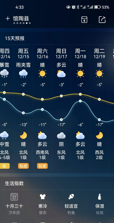 未来两周左右:借助软件能够准确预判接下来15天的气温波动趋势,科学规划出行计划,助力您更妥善地安排行程。