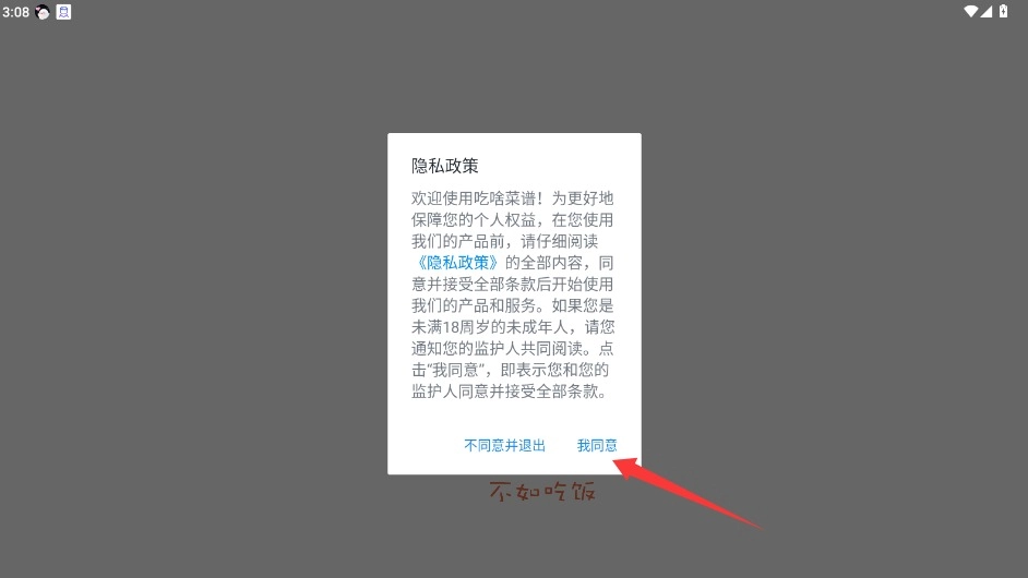 首次启动时需阅读并同意用户协议,点击确认按钮即可进入主界面。