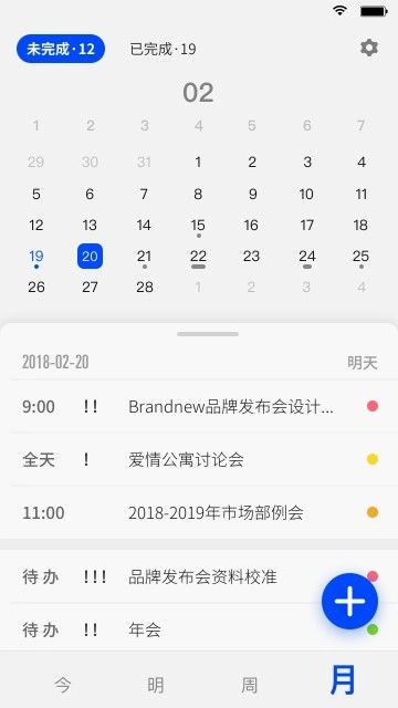 可以用今日、明日、本周、本月这四种不同的方式查看日程事项。