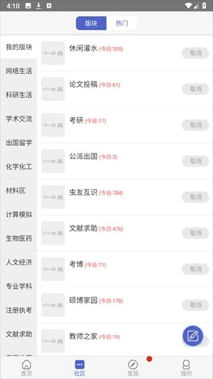 2、进入社区专栏。给你带来不同类型板块的社区,可以找到适合的圈子进行交流。