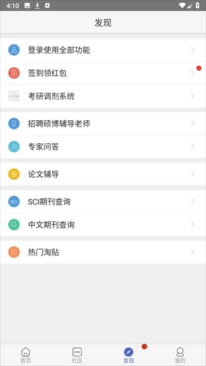 3、进入发现专栏,支持期刊查询以及论文辅导等等。