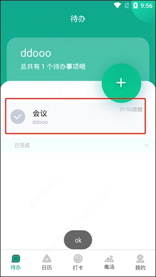done是一款界面清爽的日程提醒工具,用户能在这里记录每天或特定时段的具体事项,设置好提醒时间后,就无需担心遗忘,还能清晰查看每日安排,让思维更有条理,生活、学习和工作等也能井然有序,轻松把控各类事件的进展;软件内还具备打卡提醒、备忘录等功能,可在线记录重要日期、密码等信息。
