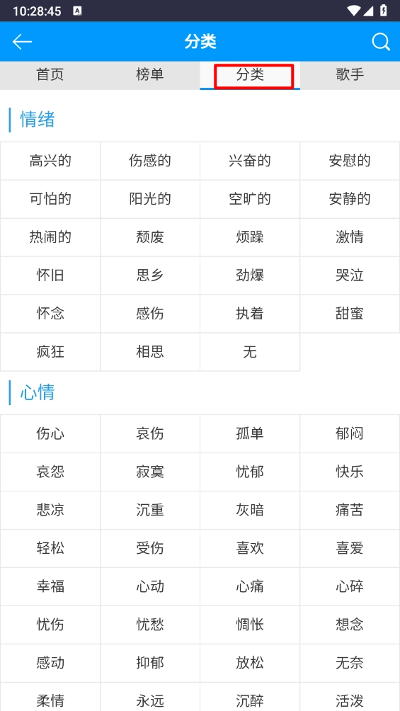 4、同时还可以根据歌曲的分类进行选择喜欢的音乐。