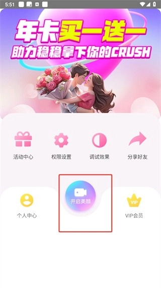 1、第一步先打开视频美颜大师这款软件,进入首页之后,点击界面上的【开启美颜】按钮。