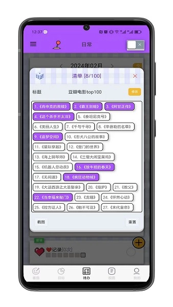 6. 每日习惯:帮助你跟踪和建立健康的日常习惯。你可以设定并记录你的习惯,逐渐建立一个积极的生活方式。