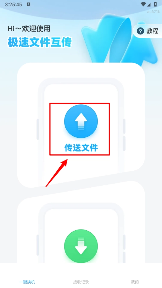 1、打开“极速文件互传”App,在主界面选择“传输文件”,同意权限授权。
