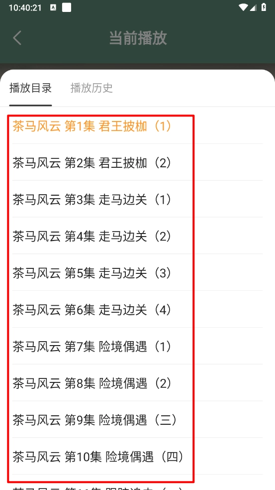 5、点击目录图标进入,如图所示,选择需要的章节就能收听了。
