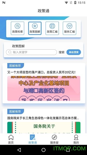 实时收集并更新园区相关政策,涵盖工信发改类、知识产权类、科技类、人才类、税收类、金融类等类别,政策等级分为国家级、省级、市级、区级。