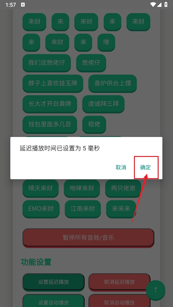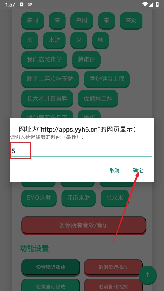 2、点击“设置延迟播放”进入相应界面,输入所需的延迟播放时间后,点击“确定”按钮即可。
