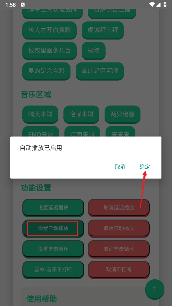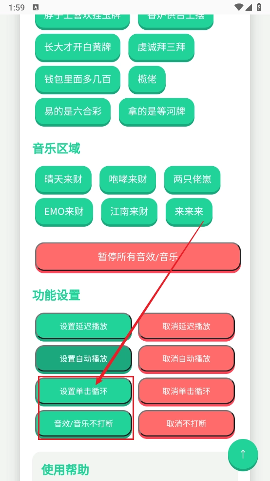 5、最后也能在功能设置里进行单击循环、音效/音乐等相关设置。