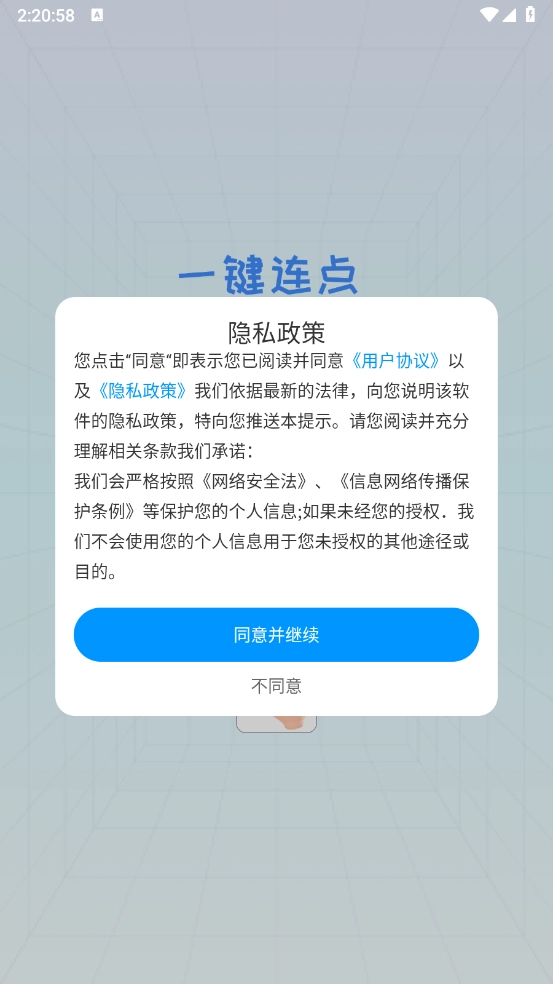 1、用户在安装软件,查看相关用户协议和隐私政策。