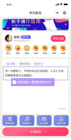 刺鸟配音免费版是一款具有情绪的配音软件,文字转语音配音,将近300个配音主播音色,多种风格,支持普通话、多种方言选择,每个音色主播都有十几种情绪情感选择,输入文字一键配音,支持多人配音,提取文案智能改写,可以自定义语速、音量,让配音更自然流畅,支持保存本地。