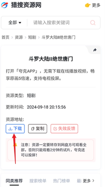 猎搜资源网,专为网盘资源搜索设计的高效工具,进入后你能够帮你查找电影、短片、学习材料、技术教程等多种类型的资源,只需输入资源名称,就能检索到丰富的相关内容,并进行筛选,全部免费使用,完全没有任何的限制哟!