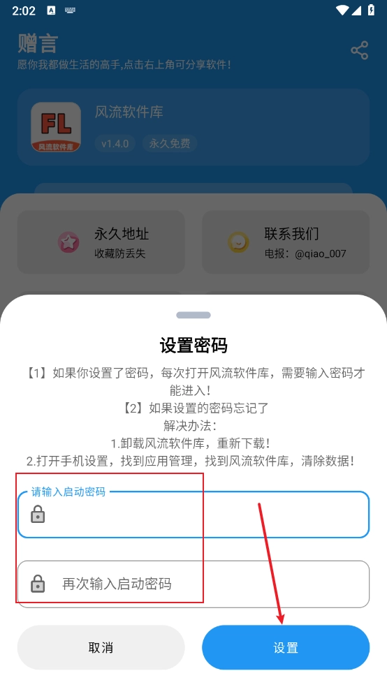 1、如果你设置了密码,每次打开风流软件库时,都得输入密码方可进入。