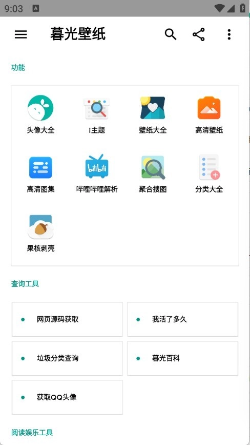 附加功能模块涵盖各类实用功能入口,像垃圾分类查询、与知乎等平台的热搜列表、Web源代码获取等,以此拓宽软件的应用场景。