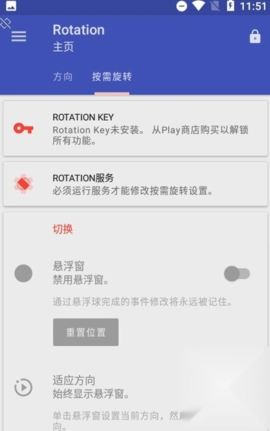 -应用锁定:锁定特定应用的屏幕旋转方向。