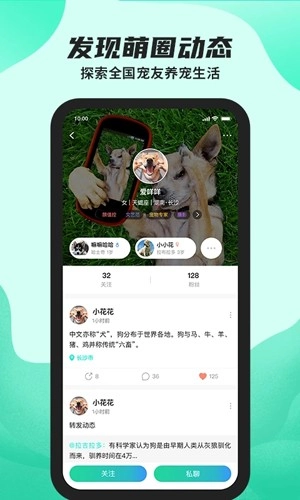 4、宠主可以在线给宠物找对象、交朋友,还能和不认识的宠友玩趣味匹配互动,感受专属于宠友圈的可爱社交。