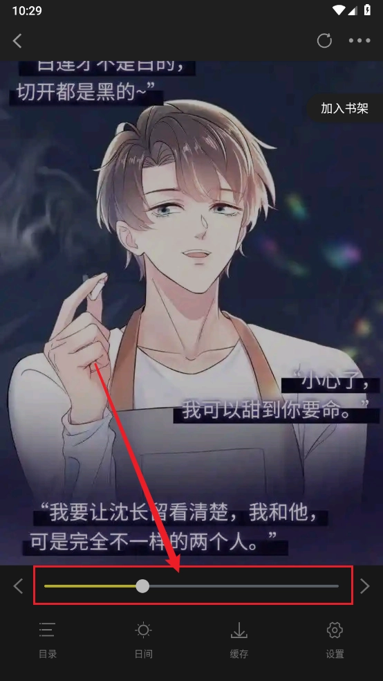 3、在漫画界面点击中间区域呼出菜单,点击"夜间"。