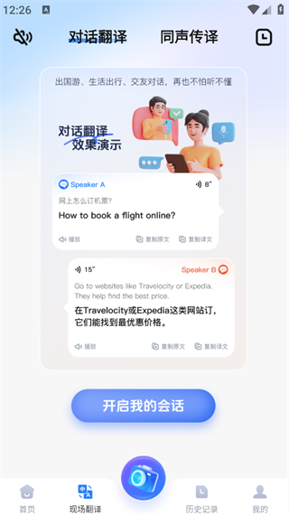 3. 首页就能直接看到图片翻译、同声传译、文本翻译等功能。