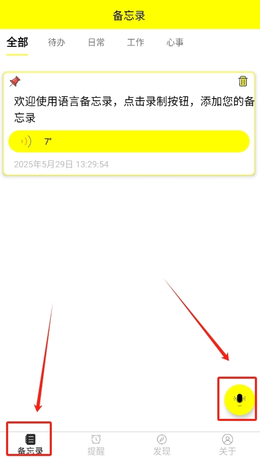 3、点击录音按钮录制语音备忘录,也可以手动输入文字来记录事项。