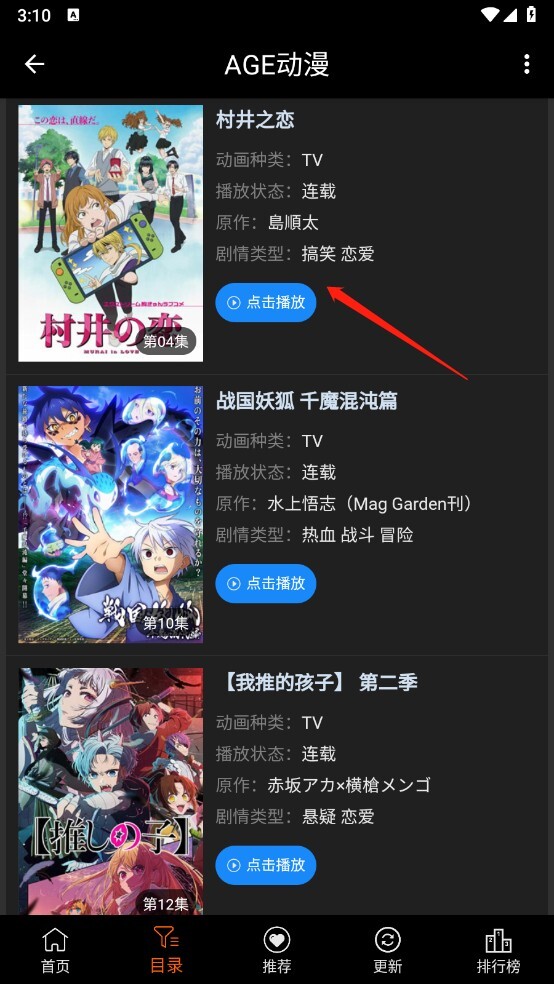 1、打扰,轻松点击就能流畅播放喜爱的动漫,分类也十分全面